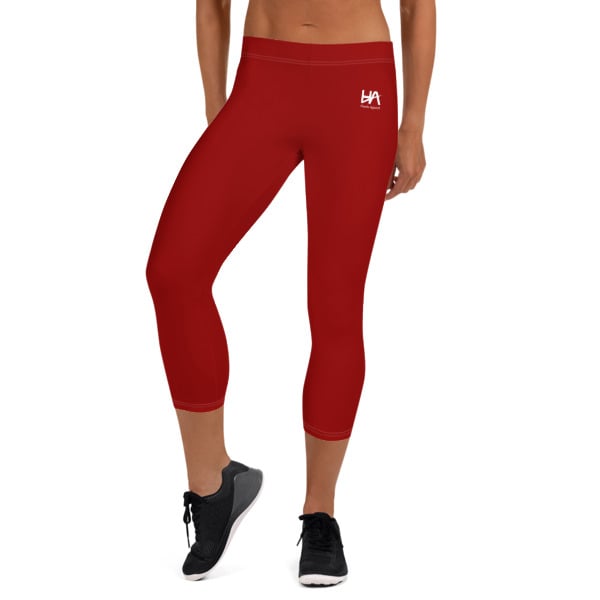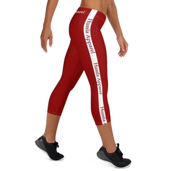 "HA" Red & White Capri Leggings "Hussla Apparel" 07182019